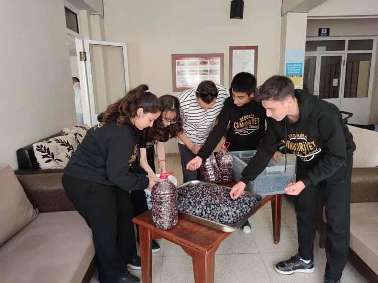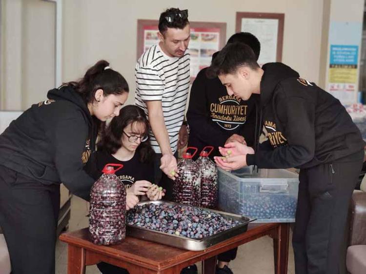 İzmir Bergama'da lise öğrencileri, öğretmenleriyle 5 yıl önce okul bahçesine dikilen zeytin ağaçlarının hasadını yaptı. Öğrenciler, topladıkları zeytinleri kışın kahvaltılarında tüketmek için kurdu. Müdür başyardımcısı Zafer Sayıner, zeytin hasadının öğrencilerin tarıma ve doğaya olan merak ve keşfetme duygularını harekete geçirdiğini dile getirdi.