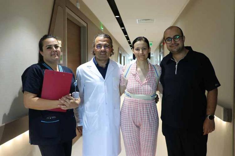 Prof. Dr. Mehmet Atıf Erol Aksekili, skolyozun kendisini tekrar eden ve gelişen bir hastalık türü olduğunu söyleyerek "Skolyoz, implantların bittiği yerde özellikle tekrar gelişebiliyor. Ameliyat sonrası bazı egzersizleri rutin olarak yapmak gerekiyor. Ve takiplerini düzenli bir şekilde, özellikle implantlı yapılan skolyoz ameliyatlarını yılda bir gibi kontrol etmek gerekiyor. Hastamızda yavaş yavaş gelişen kısmi omurga çıkığı ve omurga kireçlenmesi problemi sonucu deformite tekrar gelişiyor. Ve bu sinirlere baskı yaparak kısmi sinir felcine yol açıyor. Bu durumda yürümesini bozuyor. Biz bu durumdayken ameliyatını gerçekleştirdik. Ve oldukça dramatik bir sonuç aldık. Kısa zamanda sağlığına kavuştu. Tabi ki tedavi sürecimiz devam ediyor. Yaklaşık bu 3 aylık bir kaynama süreci olacak. Ondan sonra da daha çok fizik tedavi egzersizleriyle devam edeceğiz" diye konuştu