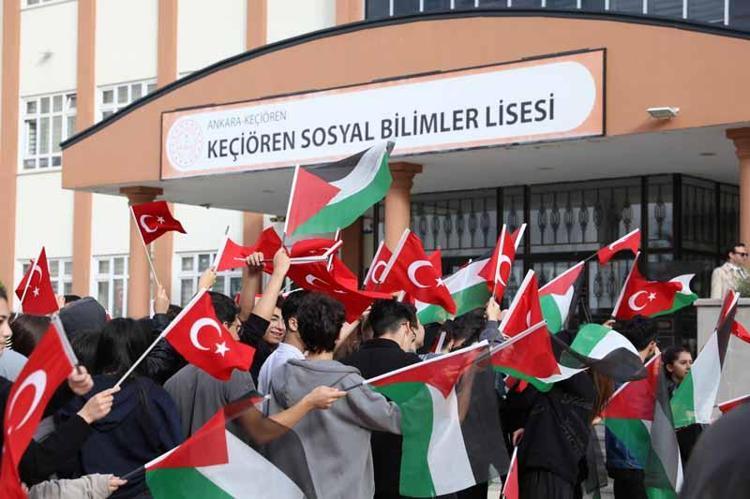 Milli Eğitim Bakanı Yusuf Tekin'in imzası ile 81 ile gönderilen yazıda, 7 Ekim Salı günü tüm okullarda 'Filistin Farkındalık Etkinlikleri' düzenlenmesi istendi. Yazıda, Filistin'de yaşanan insan hakları ihlallerine dikkat çekmek ve öğrencilerde barış, demokrasi ile insan hakları bilincinin güçlendirilmesinin amaçladığı bildirildi. Bu kapsamda Keçiören Sosyal Bilimler Lisesi'nde düzenlenen etkinliğe İl Milli Eğitim Müdür Yardımcısı Emrah Tokatlı katıldı. Okul bahçesinde ellerinde Türk ve Filistin bayraklarıyla 'Nehirden denize özgür Filistin' sloganı atan öğrenciler, Filistin'de yaşanan insan hakları ihlallerine sessiz kalmadı. Okulun konferans salonunda devam eden etkinliklerde Kur'an-ı Kerim okundu. Ardından dualar edildi, şiirler okundu ve Filistin'de yaşananlarla ilgili video izletildi.
