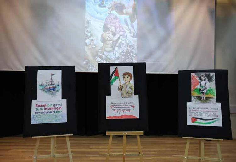 İl Milli Eğitim Müdür Yardımcısı Tokatlı, "Maalesef uzun yıllardır bu Siyonist İsrail devletinin Filistinli kardeşlerimize uyguladığı bir katliam söz konusu. Ancak 2 yıl önce 7 Ekim'de başlattığı topyekun harekatla birlikte Gazze'de maalesef taş üstünde taş kalmadı. Hastane kalmadı, okul kalmadı, sağlık ocağı kalmadı, ilaç kalmadı, temiz içecek su kalmadı, ekmek kalmadı maalesef. On binlerce çocuk, on binlerce genç, on binlerce kadın, on binlerce erkek orada katledildi. Orada kalan insanlar şu anda açlığa, hastalığa ve yokluğa mahkum bırakılıyor. Bizler de vicdanımızla, gür sesimizle bunun karşısında olmaya devam ediyoruz. Bizler okullarımızda sadece akademik başarıyı önceleyen, sadece derslerini alan çocuklar değil, aynı zamanda çevresine duyarlı ve etrafında olup bitenlere değerlendirebilen, analiz edebilen, iyi şeyleri destekleyen kötülüklerinde karşısında durabilen bireyler olmaları için tüm varlığımızla gayret ediyoruz, edeceğiz inşallah" dedi.