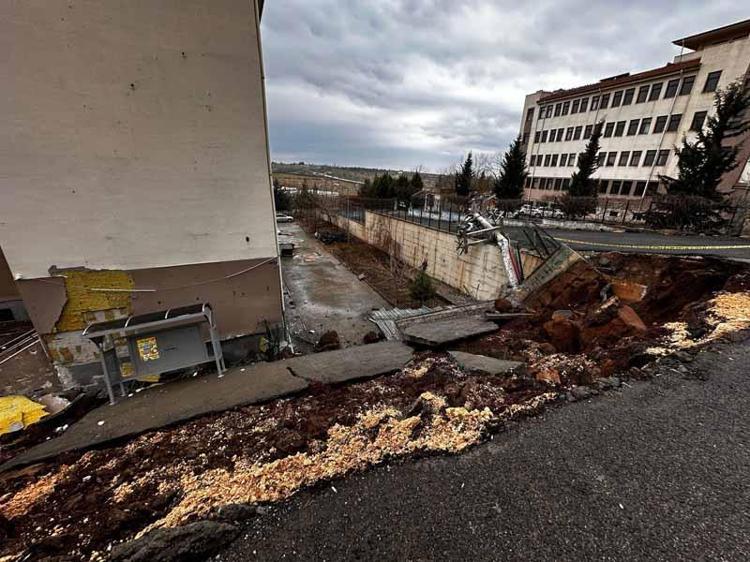 Şanlıurfa’nın Siverek ilçesinde, Molla Ramazan Anadolu İmam Hatip Lisesi'nde istinat duvarı çöktü. Çökme anı güvenlik kamerasına yansırken, okulda eğitime ara verildi.