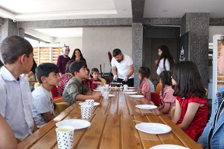 Okullar açıldığından bu yana sürekli öğrencilerle beraberiz. Kış ayında yollar riskli olduğu için öğrencileri tehlikeye atmamak için köylere ikramları ben götürdüm. Karların erimesiyle öğrencilerimizin ilçe merkezini de görmelerini sağlamak ve onlar için bir değişiklik olması için de özel servis ile her hafta üç köy okulunu işletmemize getirerek burada ağırlıyoruz.