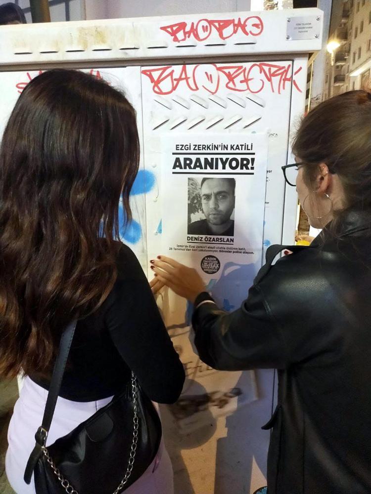 İlk olarak İzmir'de şehrin işlek noktalarına yapıştırılan ve Deniz Özarslan'ın fotoğrafının da bulunduğu ilanlara, 'Ezgi Zerkin'in katili Deniz Özarslan nerede?' yazıldı. Sonrasında başka şehirlerde de afiş çalışması gerçekleştirildi.