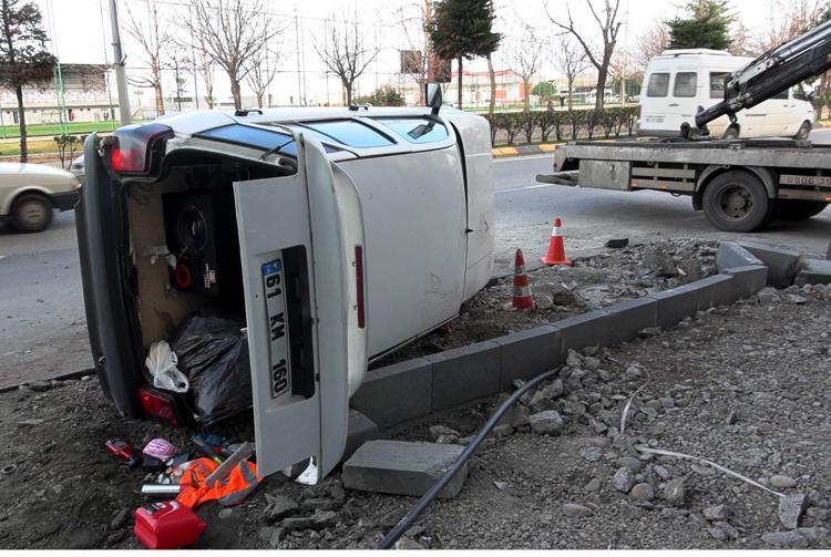 Kaza, saat 15.00 sıralarında Faroz Mahallesi’nde meydana geldi. İ.K.A. (19), ani fren yapan önündeki araca çarpmamak için yönetimindeki 61 KM 160 plakalı otomobilin direksiyonunu kırdı. Bu sırada kontrolün kaybolduğu araç, kaldırım taşına çarptı. Yan yatan aracın sürücüsü ile yanındaki arkadaşı kendi imkanlarıyla yara almadan çıktı.