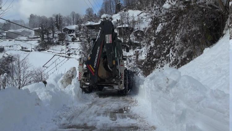 Bazı iş makineleri ve operatörlerini deprem bölgesine gönderen Çamlıhemşin Belediye Başkanı Osman Haşimoğlu, kar nedeniyle kapanan köy yolunu direksiyonuna geçtiği kepçeyle kendisi açtı.