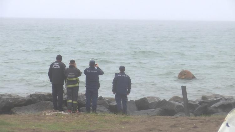 Sahilde yürüyüş yapan vatandaşlar, denizde bir cisim olduğunu fark etti.
