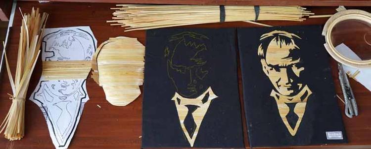 “Tarladan temin edilen çavdarlar önce kökleri ve başakları kesilip sap haline getiriliyor. Çalışmadan önce ıslatılıp düzelttikten sonra ütülemek suretiyle düzgün hale getiriliyor. Daha sonra yapılacak motifin üzerine yapıştırılarak kesiliyor ve tablolara yerleştirilerek eser ortaya çıkıyor. Boya ile uzun süre kaynatmak suretiyle de renk elde ediyorum, bunu da tablolara yansıtıyorum."