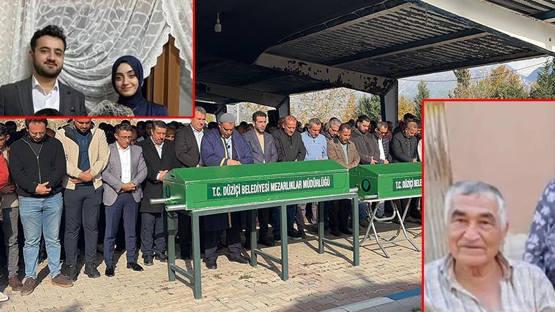 Osmaniye'de hafif ticari aracın otomobile çarptığı kazada hayatını kaybeden Süleyman (26) ve Sevde Körkü (26) çifti ile Mehmet Toy (77), toprağa verildi.