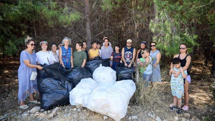 Çöp toplayan çocuklardan Neslihan Özdemir, "Ormanlarımızı temizliyoruz. Doğamızın, ormanlarımızın, ağaçlarımızın hiçbiri yanmasın. Burası çok pisti. Poşetleri ve çöpleri topladık. Yangına karşı önlem aldık. Ormanlarımızı temiz tutalım, yerlere çöp atmayalım" dedi.