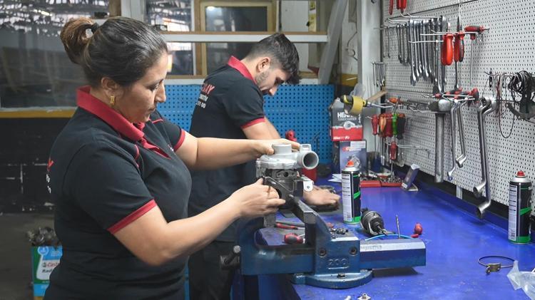 Bursa'da 3 çocuk annesi Aynur Özdemir (43), 5 yıl önce geldiği kentin Oto Sanayi Sitesi'nde açtığı dükkanında turbo ustası olarak hizmet veriyor. Sanayi esnafı tarafından 'Turbocu Abla' olarak tanınan ve ailece çalıştıkları iş yerinde çocuklarının da ustası olan Özdemir, "Mesleğimde, kendimi ve çocuklarımı sürekli geliştirmek istiyorum" dedi.