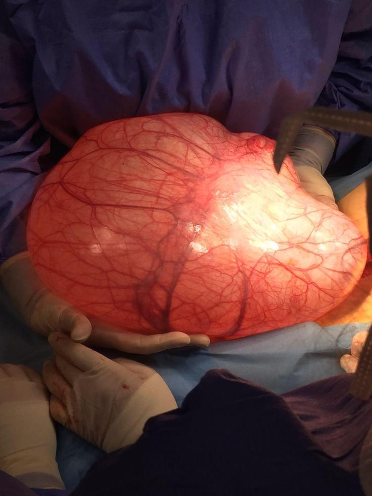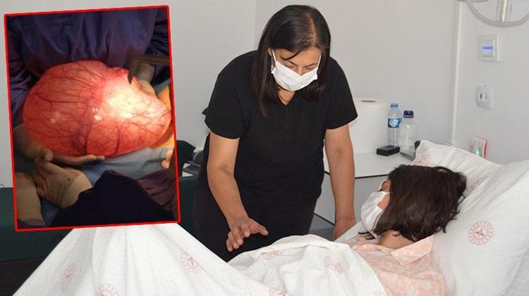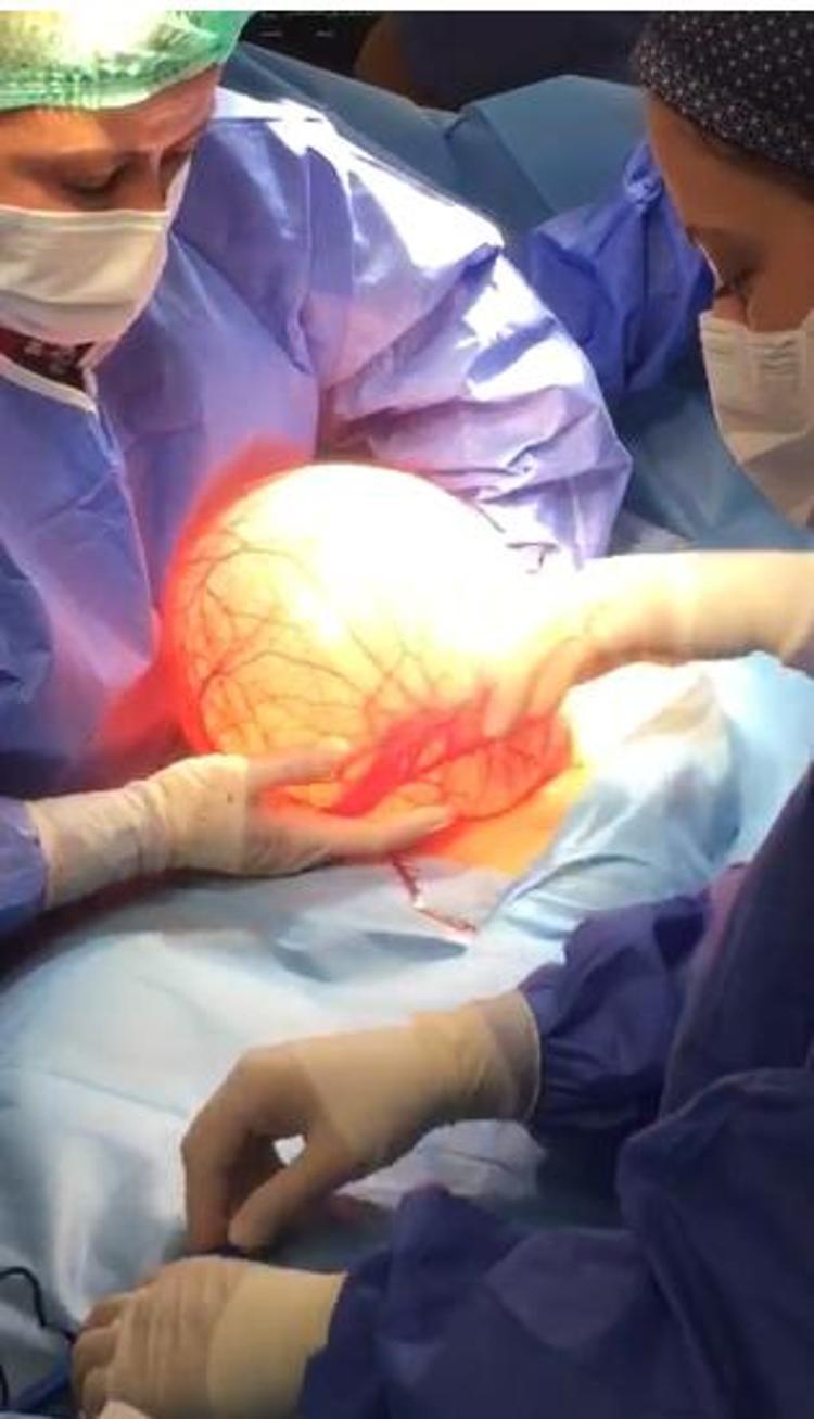 Rutin kontrolleri yapılırken çekilen tomografisinde karın içerisinde büyük bir kitle olduğunu tespit edildi. Neredeyse bütün karnını kaplayan bir kitle nedeniyle hastayı hemen ameliyat aldık. Başarı bir ameliyatla yaklaşık 60 santimetre büyüklüğünde ve 7 kilo 800 gram ağırlığındaki kitleyi hiçbir sorun yaşamadan çıkardık.
