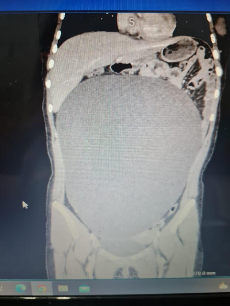 Hastamızın şu an da durumu iyi ve besleniyor. Daha önce 26 santimetrelik bir kitle görmüştüm. Bu ise ondan daha büyük ve bütün karnını kaplamış şekilde, bütün organları itilmiş ve yer değiştirip küçülmüş ve yetirince gelişmemişti. Şu anda karın içinde ciddi bir boşluk oluştu. Kızımız da 7 kilo vermiş oldu.