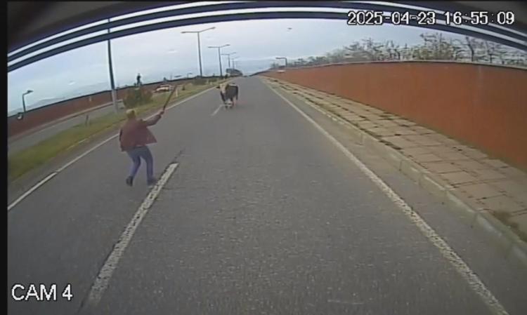 Bingöl’de halk otobüsü şoförü Mahmut Bürkük, yola çıkan, eline aldığı sopayla uzaklaştırmak istediği boğanın saldırısına uğradı. Sürücü koşarak saldırıdan kurtulurken, o anlar kameraya yansıdı.