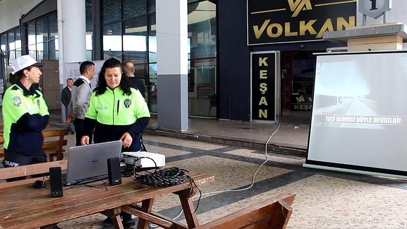 Edirne'de trafik ekipleri, Ramazan Bayramı öncesi otogarda sinevizyon gösterisi yaparak, yolcu ve şoförlerini emniyet kemeri kullanımı konusunda uyardı.