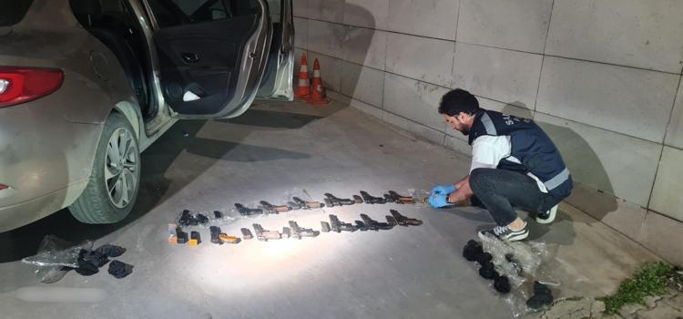 Otomobilde 17 ruhsatsız tabancayla yakalandı