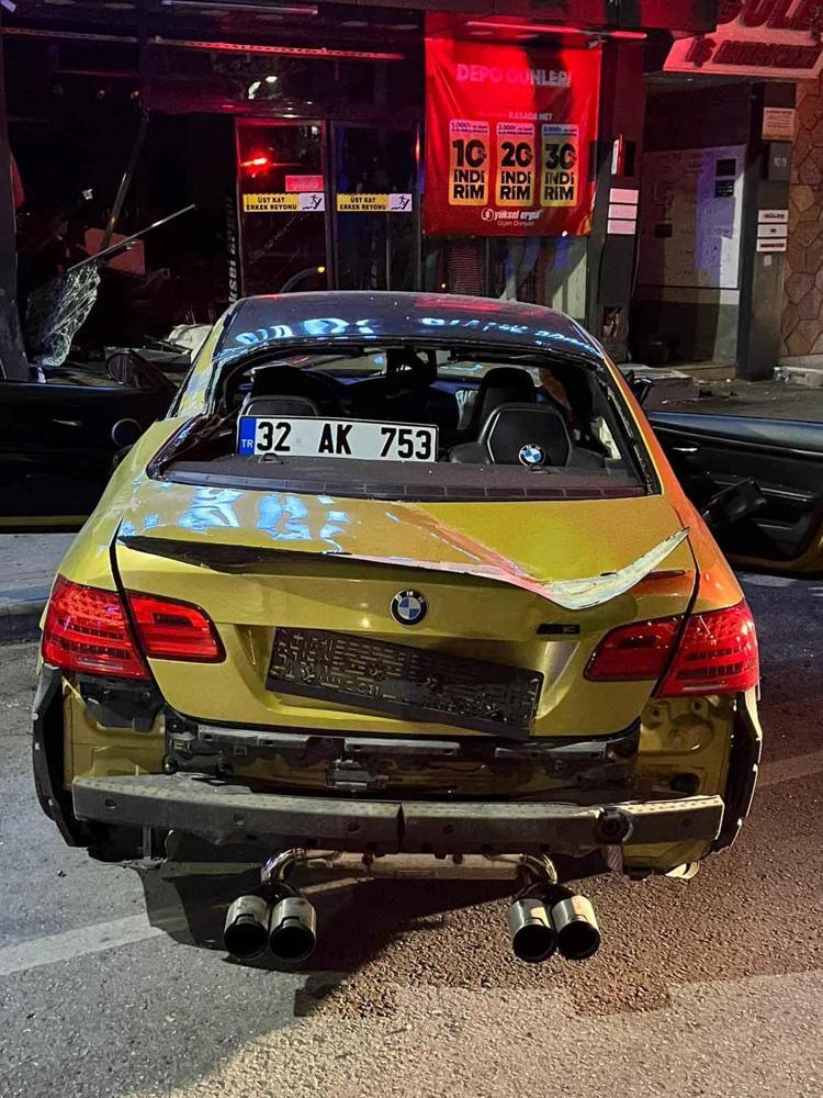 Kaza, saat 05.00 sıralarında Mimar Sinan Caddesi yolunda meydana geldi. M.O.A.'nın kontrolünü yitirdiği 32 AK 753 plakalı otomobil, yol kenarındaki giyim mağazasına çarptı. Kaldırımda yürüyen bir kadın ise kazadan saniyelerle kurtuldu. Çevredekilerin ihbarı üzerine kaza yerine sağlık, itfaiye ve polis ekipleri sevk edildi. Sağlık ekipleri tarafından ilk müdahalesi yapılan M.O.A. ambulansla hastaneye kaldırıldı. Otomobil çekiciyle olay yerinden götürülürken, mağazada ise hasar meydana geldi.