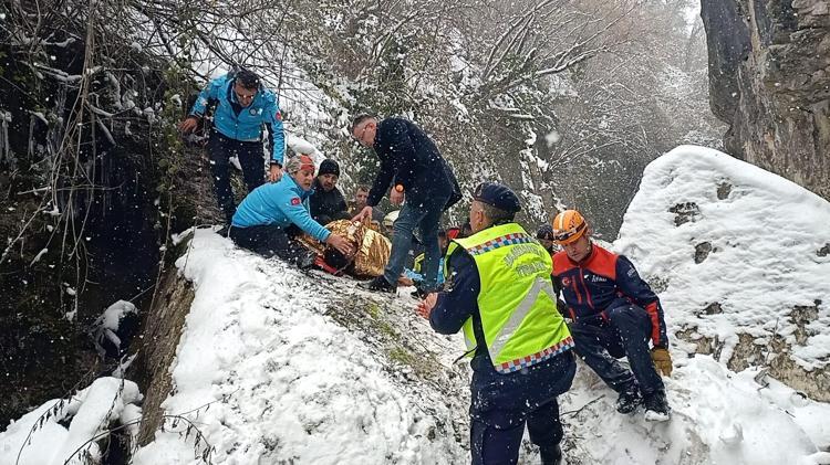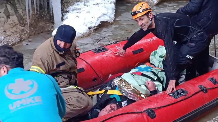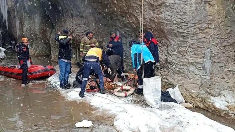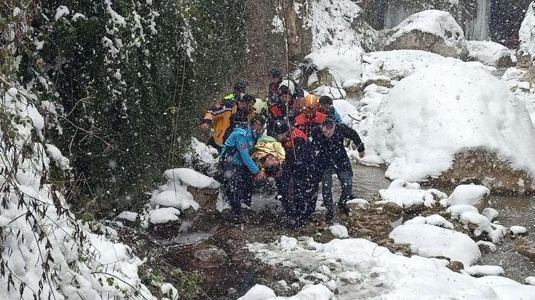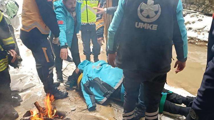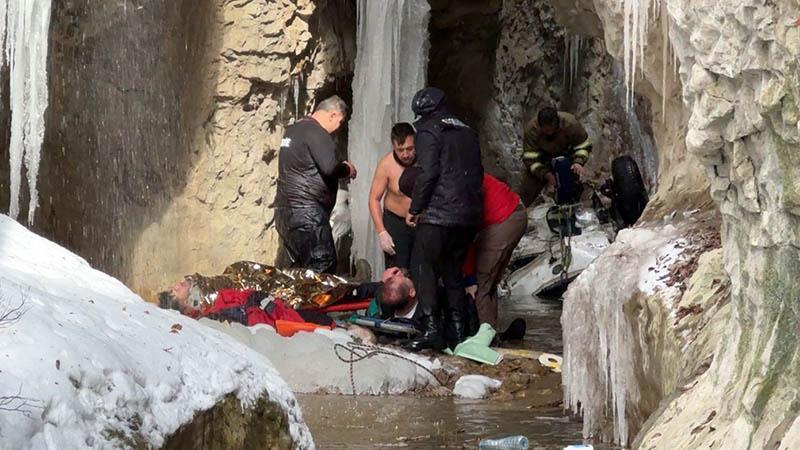 İhbar üzerine bölgeye jandarma, AFAD, itfaiye, UMKE ve sağlık ekipleri sevk edildi. Karla kaplı ve bazı bölümlerde yüzeyi buz tutan suyun olduğu kanyona düşen otomobildeki Ekrem Şahin, İsa Atay ile İlhan Kayaoğlu’nu kurtarmak için çalışma başlatıldı.