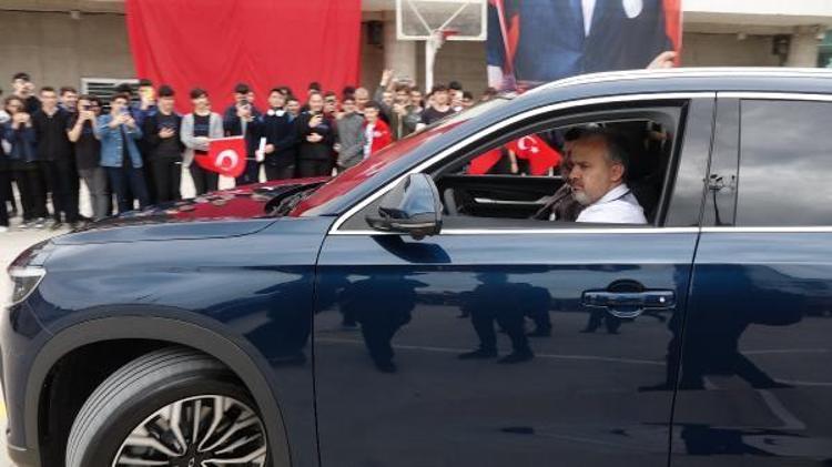 Öğrenciler, Aktaş'ı, Türk bayraklarıyla karşıladı. Öğretmen ve öğrenciler, okulun bahçesinde inceleme fırsatı buldukları Togg'la hatıra fotoğrafı çektirirken, Aktaş, 4 öğrenciye okulun etrafında araçla tur attırdı.