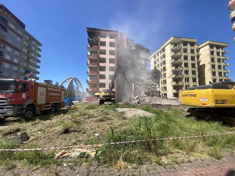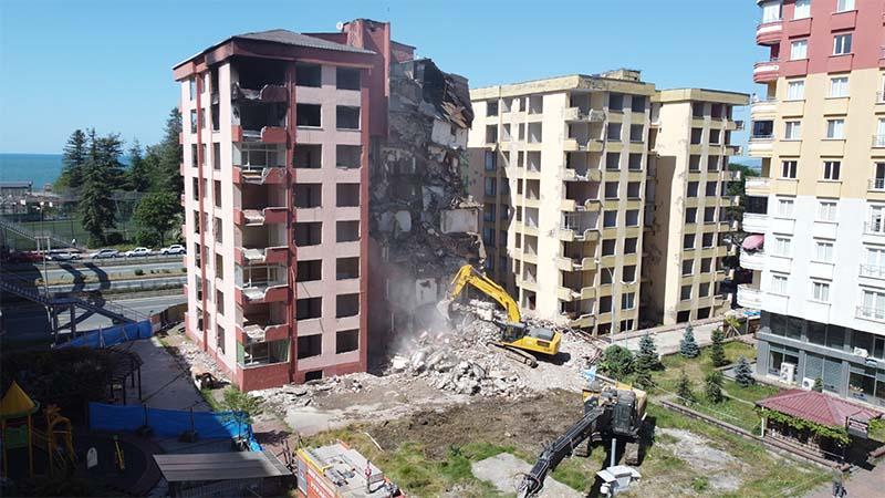 Rize'de, geçen yıl 12 Aralık’ta etkili olan fırtınadan sonra tedbir amaçlı tahliye edilip, yapılan incelemelerde bodrum katında hasar belirlenen ve 'oturulamaz' raporu verilen 8 katlı 2 binada yıkım çalışmasına başlandı.