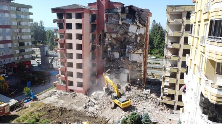 'Oturulamaz' raporu verilen 8 katlı 2 binada yıkım başladı