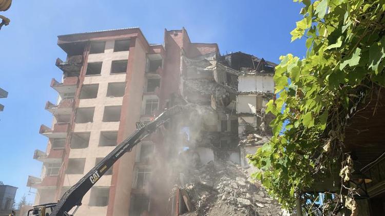 İş makinesi operatörü Metin Keskin, "Yıkıma bugün saat 13.00 sıralarında başladık. Hedefimiz yıkımı 3 ya da 4 günde bitirmek. Binalar çürük. Makası vurduğumuz anda binanın nasıl olduğunu anlıyoruz. Binalarda zaten çatlaklar da vardı. Dokunduğumuzda bir taraf komple aşağıya indi" dedi.