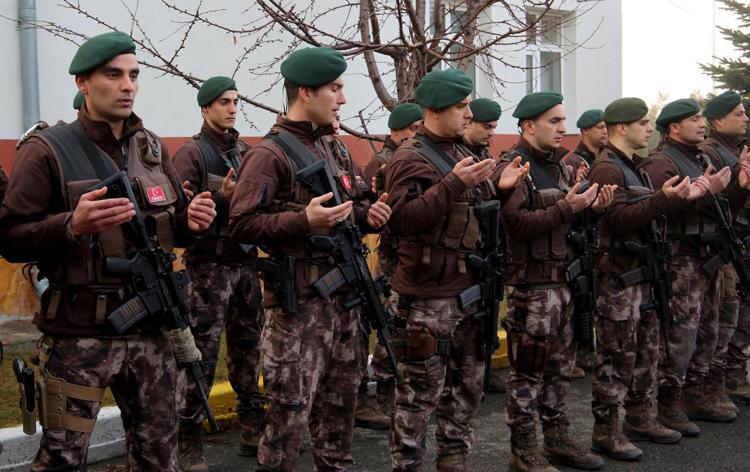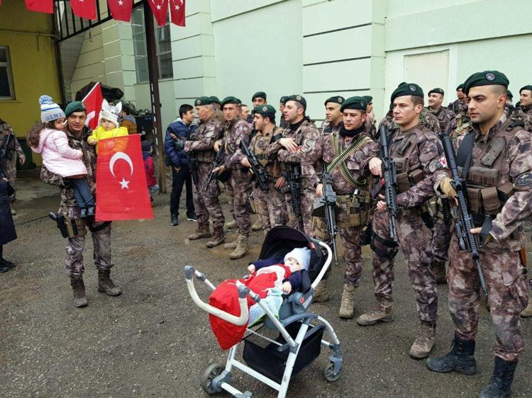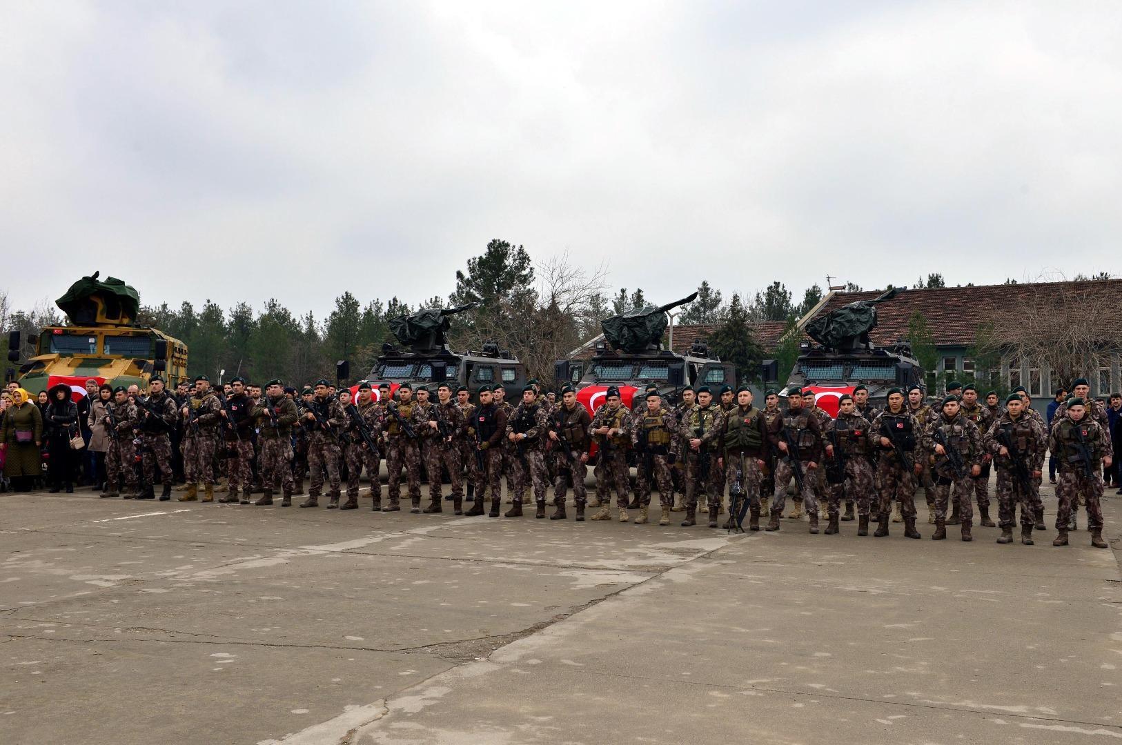 Türk Silahlı Kuvvetleri (TSK) tarafından Afrin'deki terör örgütlerine yönelik sürdürülen 'Zeytin Dalı Harekatı'na katılacak özel harekat polisleri, dualarla bölgeye uğurlandı.