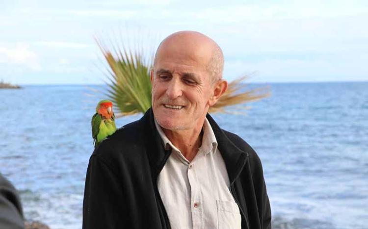 Papağanı 'Lara'yı omzunda gezdiriyor