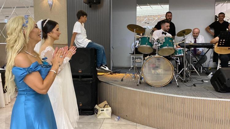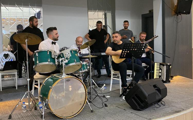 Çiftin yakınlarının yanı sıra çok sayıda davetlinin katıldığı düğünde, aynı zamanda müzisyen olup, çok sayıda enstrüman çalabilen Ertunç Gökçek, baterinin başına geçti. Ertunç, müzisyen arkadaşlarına baterisiyle eşlik ederken gelin Büşra da pistte oynadı. Damadın bateri gösterisi, büyük beğeni topladı. Gelin ve damadın yakınları, gecenin ilerleyen saatlerine kadar müzik eşliğinde oynayıp, gönüllerince eğlendi.