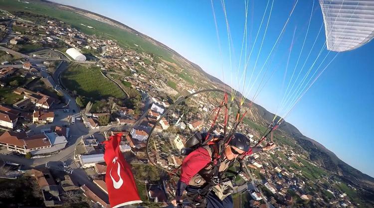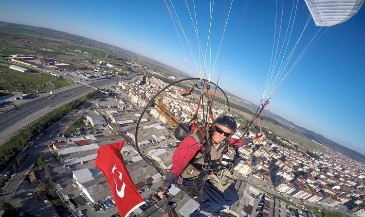 Paramotorla ‘Çanakkale şehitleri’ anısına saygı uçuşu yaptı