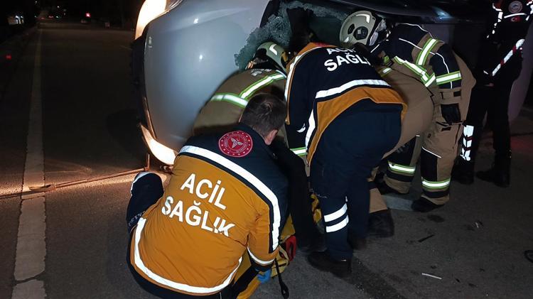 Araç içinde sıkışan Kara, itfaiye ekiplerinin yaklaşık 20 dakika süren müdahalesi sonucu çıkarıldı.