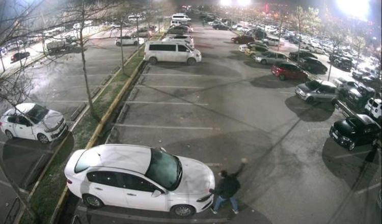 Görüntülerde; eline parke taşı alan kişinin park halindeki araçların camlarını kırdığı, ardından rahat tavırlar sergileyerek otoparktan çıktığı görüldü.