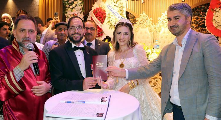 Düğünün yapıldığı salona damadın silah arkadaşları, Ali Kınık'ın ‘Yalnız değilsin’ şarkısı eşliğinde, ellerinde Türk bayrağı ile girdi. Yakutiye Belediye Başkanı Mahmut Uçar'ın nikahı kıydığı törene, Aile ve Sosyal Hizmetler Bakan Yardımcısı Zafer Tarıkdaroğlu, Erzurum Vali Yardımcısı Ahmet Özdemir, Aile ve Sosyal Hizmetler İl Müdürü Hasan Aykut, MHP İl Başkanı Adem Yurdagül ile Türkiye Gazileri ve Şehit Aileleri Vakfı Erzurum Şube Başkanı Rıza Demir, çok sayıda gazi ve davetli katıldı. Çiftin nikah şahitliğini yapan Bakan Yardımcısı Zafer Tarıkdaroğlu, “Bu nikah, sadece 2 kişinin değil, bir milletin sevgisinin, fedakarlığının, direncinin göstergesidir" dedi.