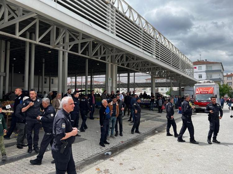 Pazarcı esnafı iki grup arasında henüz bilinmeyen bir nedenle tartışma çıktı.