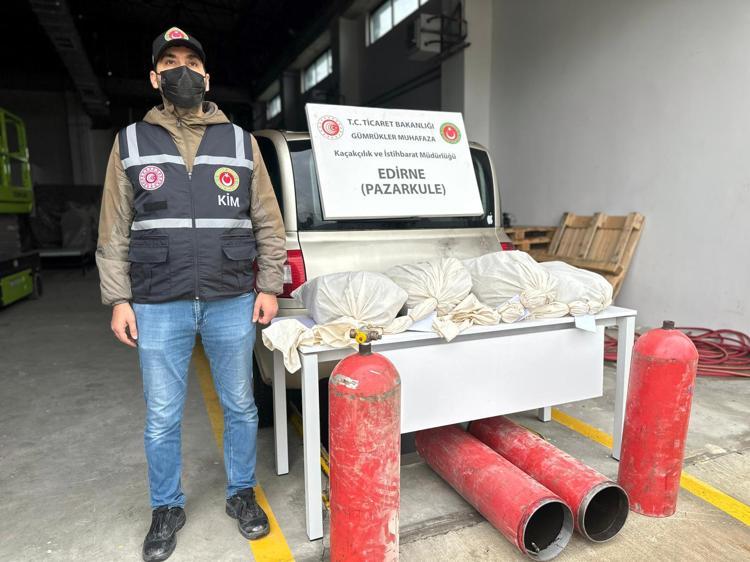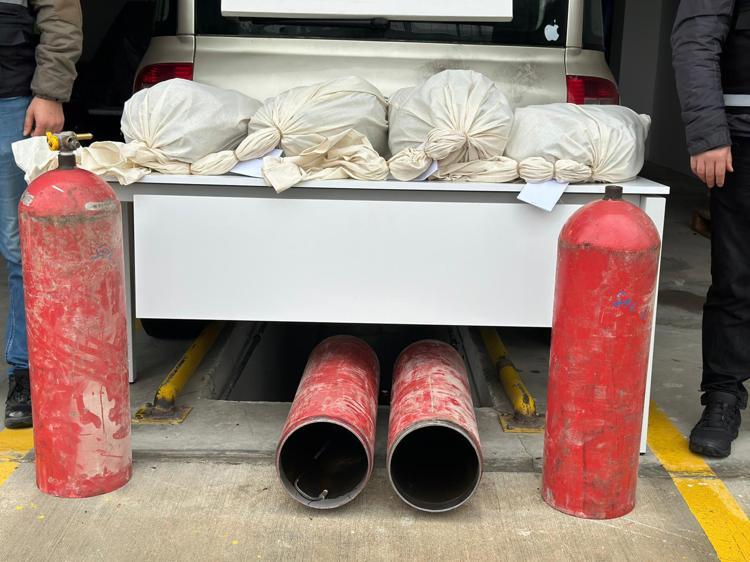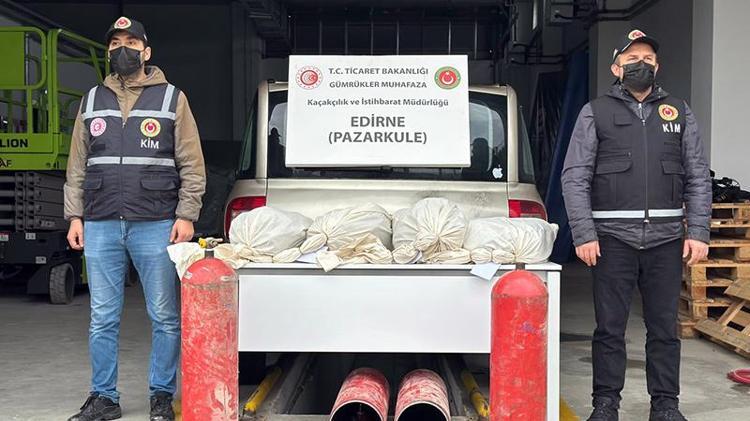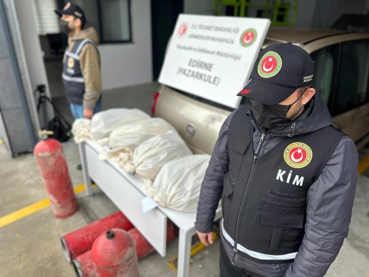 Edirne'de Pazarkule Sınır Kapısı'ndan Türkiye’ye giriş yapmak üzere gelen otomobilde, LPG tanklarının içine gizlenmiş 19 kilo 692 gram esrar ele geçirildi.