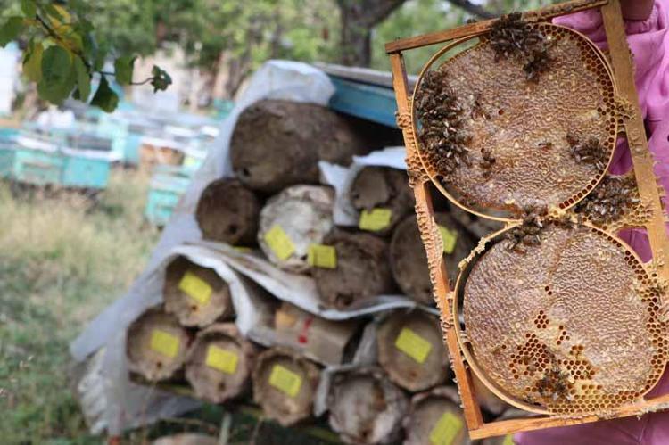 Van'ın Gevaş ilçesindeki 2 bin rakımlı bölgede kadınlar tarafından üretilen kara kovan balının hasadına başlandı. Kadınları üretime teşvik etmek için kurulan Artos Kadın Kooperatifi’nin üyeleri, söğüt dallarıyla yapılan ve etrafı çamurla kaplanan sepet kovanlarda, pembe maske ve kıyafetleri ile bal hasadı yapıyor. Artos Kadın Kooperatifi Başkanı Songül Güleç, "Sosyal Gelişmeyi Destekleme Programı kapsamında aldığımız destekle Gevaş ilçesinde 'Organik Arı Ürünleri Paketlenmesi İşlenmesi' tesisi kurduk. Bu tesiste organik kara kovan ballarımızı işleyip, paketleyip, satışa sunmayı hedefliyoruz" dedi.