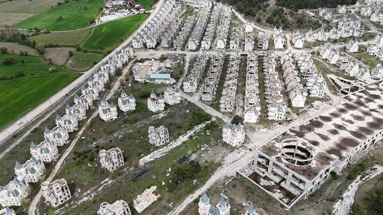 Bolu’nun Mudurnu ilçesinde 2011 yılında yapımına başlanıp, 2014 yılında da ‘peri masalı’ yaşam tarzı sunacağı vaadiyle lansmanı yapılan 732 villa, atıl kaldı. Birbirine yakın şekilde yan yana olan villalar dronla görüntülenirken, villaların iç kısmı da görüntülendi.