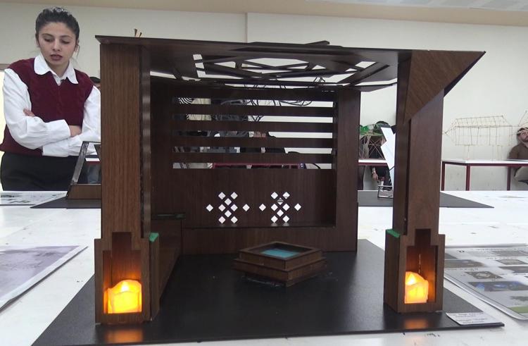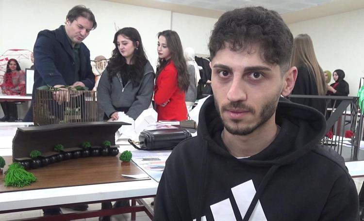 Oltu taşı tespihi kullanarak tasarladığı bank hakkında bilgi veren 4'üncü sınıf öğrencisi Serhat Çakır, "Erzurum için Oltu taşı çok önemli. Biz de Oltu taşı temalı bir bank yaptık. Tespih tanelerini kıvrımlı dizerek bazılarını oturma birimi, bazılarını ise saksı olarak kullandık. Püskül ve imame kısmında ise Erzurum'da yetişen bitkilere yer verdik. Kırsal ve kentsel mekanlarda kullanılabilecek bir bank tasarladığımızı düşünüyorum" dedi.