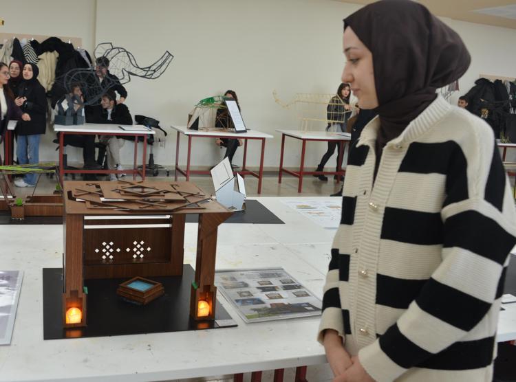 Fakülte stüdyosundaki sergide, öğrencilerin derslerde öğrendikleri bilgilerle tasarladıkları ürünler yer aldı. Sergide, doğaya atıf yapılarak hayvan soyutlaması ile kentler için modüler bank sistemleri anlatıldı. Öğrenciler, modüler bank tasarımlarında Erzurum'un eski evlerindeki kırlangıç tavan sistemine yer verirken, Oltu taşı tespihten yapılan bank tasarımı da katılımcıların ilgisini çekti.