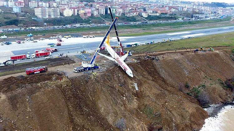 Uçaktaki 162 yolcu ile 6 kişilik mürettebat, ekiplerin müdahalesi ile tahliye edildi. Uçuş trafiğine kapatılan Trabzon Havalimanı'nda uçak için kurtarma çalışması yapıldı. 500 ve 350 tonluk 2 vinçle 100 kişilik ekibin 20 saat süren çalışması ile bulunduğu yerden çıkarılan uçak, güvenli bölgeye çekilerek, sigorta şirketi ile uzman ekiplerce incelendi. Bir daha uçamayacağı belirlenen uçağın, Yomra Belediyesi'ne tahsis edilip, restorana dönüştürülmesi planlandı. Uçak, yüklendiği TIR'la 29 Eylül 2018'de Yomra ilçesindeki pazar alanına götürüldü. Hurdaya ayrılan uçak, daha sonra Yomra ilçe sahilinde pide salonuna dönüştürüldü.