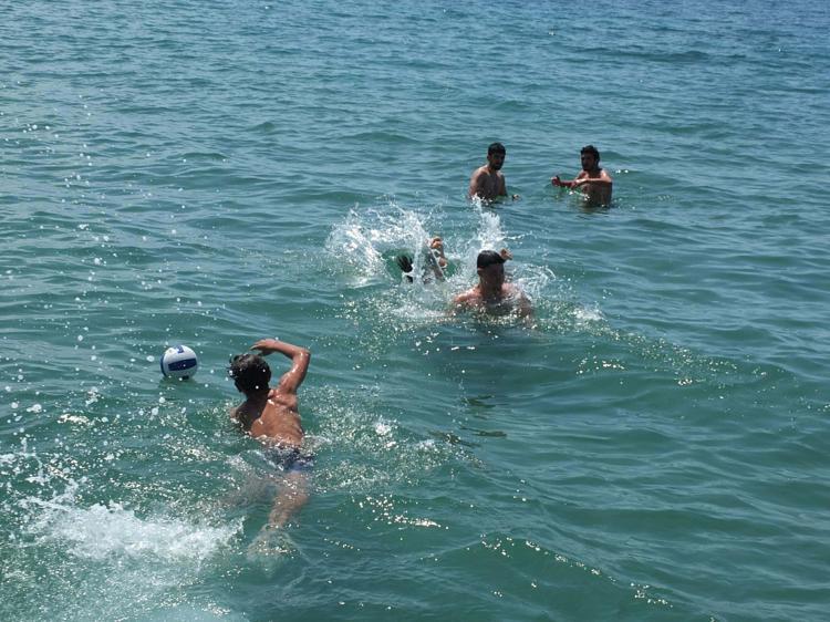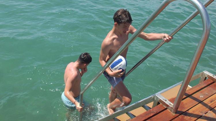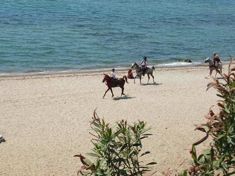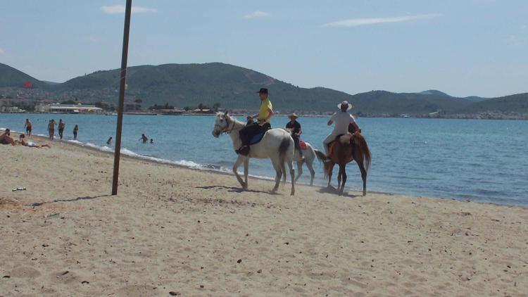 Burhaniye Ören Plajı, sıcak ve güneşli havayla birlikte hareketlendi. Hava sıcaklığının 28, deniz suyu sıcaklığının ise 17 dereceye ulaştığı ilçede deniz sezonu da açıldı. Ören Plajı'na atlarla gelen Taner Buyraz, Cumhur Gülümser (32) ve Uğur Sarıca (33) ise sahilde ilgiyle karşılandı. Ata sporu biniciliği yaşatmak istediklerini belirten Taner Buyraz, "Boş vakitlerimizde binicilikle ilgileniyoruz. Ören Ayaklı'da kendi çiftliğimiz var. Arap atlarına merakım çocukluktan geliyor. Hem biz hem atlar stres atıyor. İnsanlar da yoğun ilgi gösteriyor" dedi.