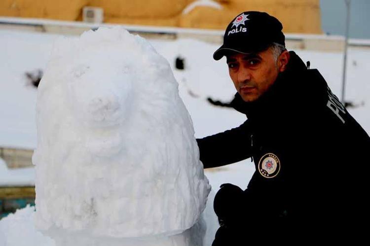 Samsun İl Emniyet Müdürlüğü Hassas Bölgeleri Koruma Şube Müdürlüğü’nde görevli polis memuru Tolga Aşlı, çocukluğundan bu yana ‘kar’a şekli veriyor.