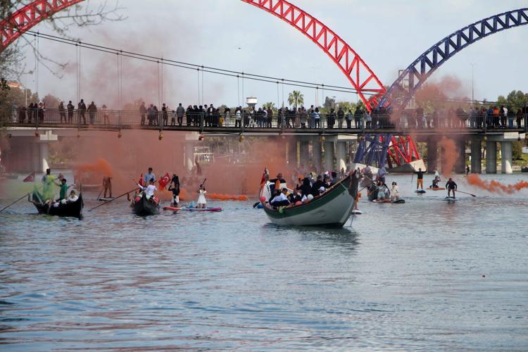 Adana’da 14’üncüsü düzenlenen Uluslararası Adana Portakal Çiçeği Karnavalı kapsamında Seyhan Nehri’nde gerçekleştirilen ‘su korteji’, renkli görüntülere sahne oldu.