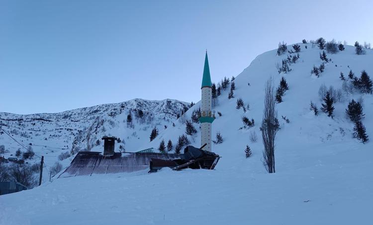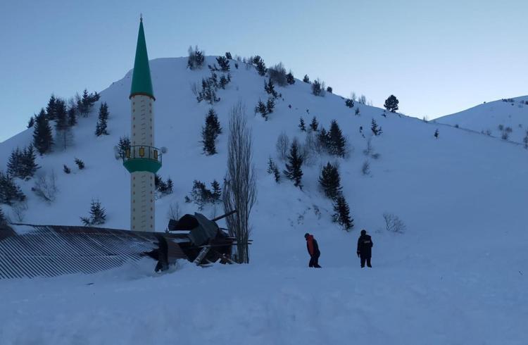 Dağdan kopan kar kütlesi köy camisi ve cami lojmanının üzerini kapattı.