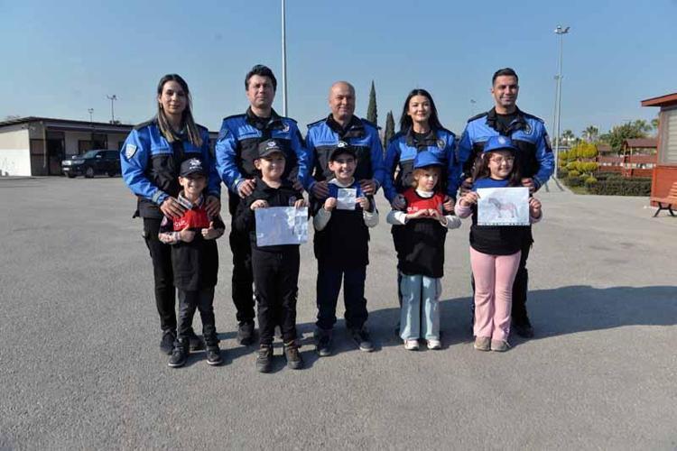 Merkez Sarıçam ilçesi Çarkıpare Mahallesi’ndeki Şehit Ertan Tokuş İlkokulu 2’nci sınıf öğrencisi Poyraz Efe Tuaç, çok sevdiği ve aralarına katılmanın hayalini kurduğu atlı polislerin resmini çizdi.