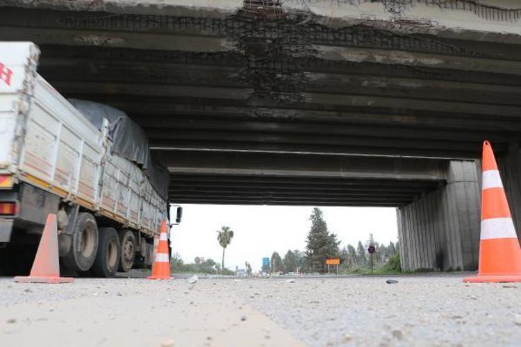 Adana-Mersin kara yolu üzerindeki Karaisalı gişeleri otoyol bağlantı köprüsü kirişlerindeki hasar dikkat çekti.