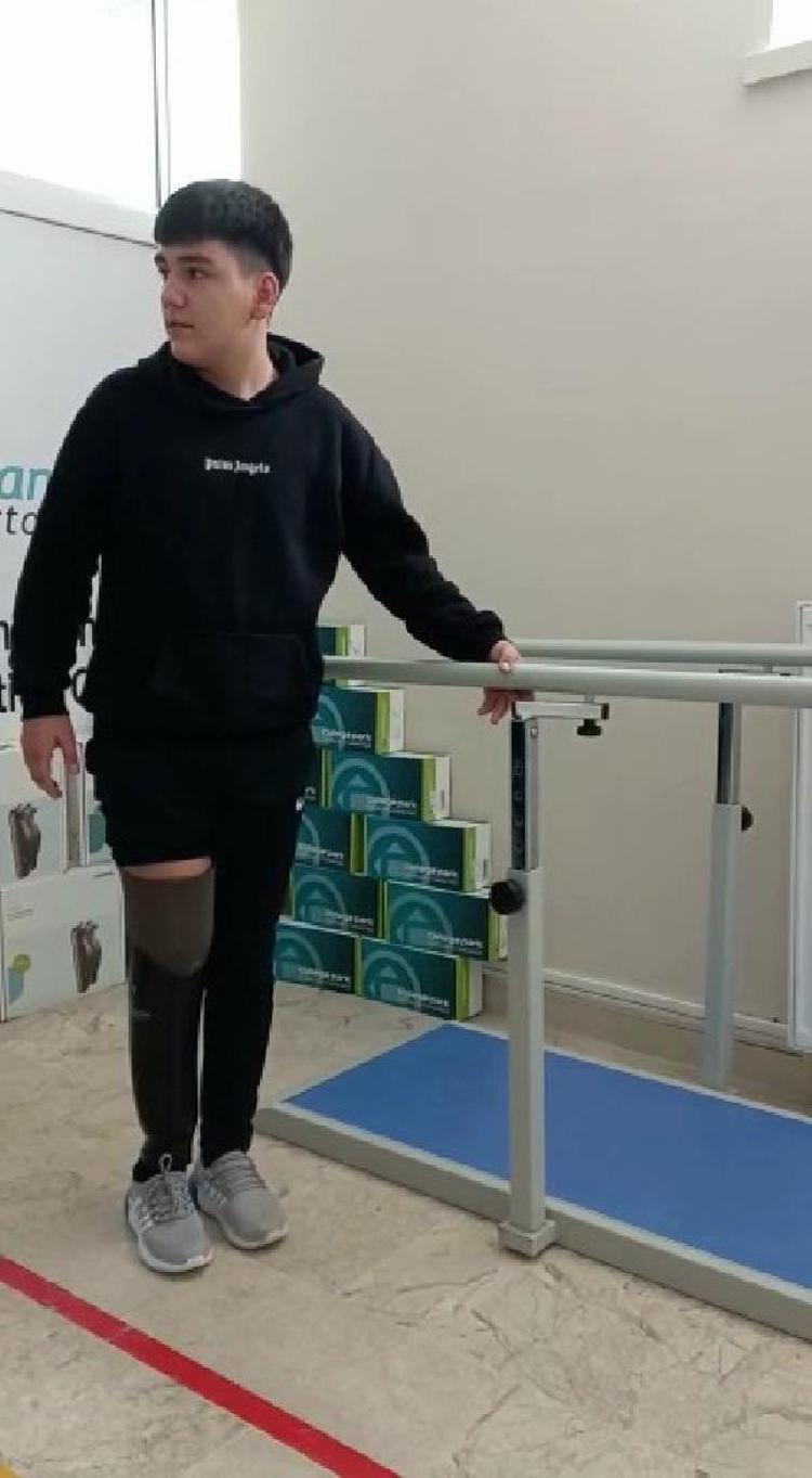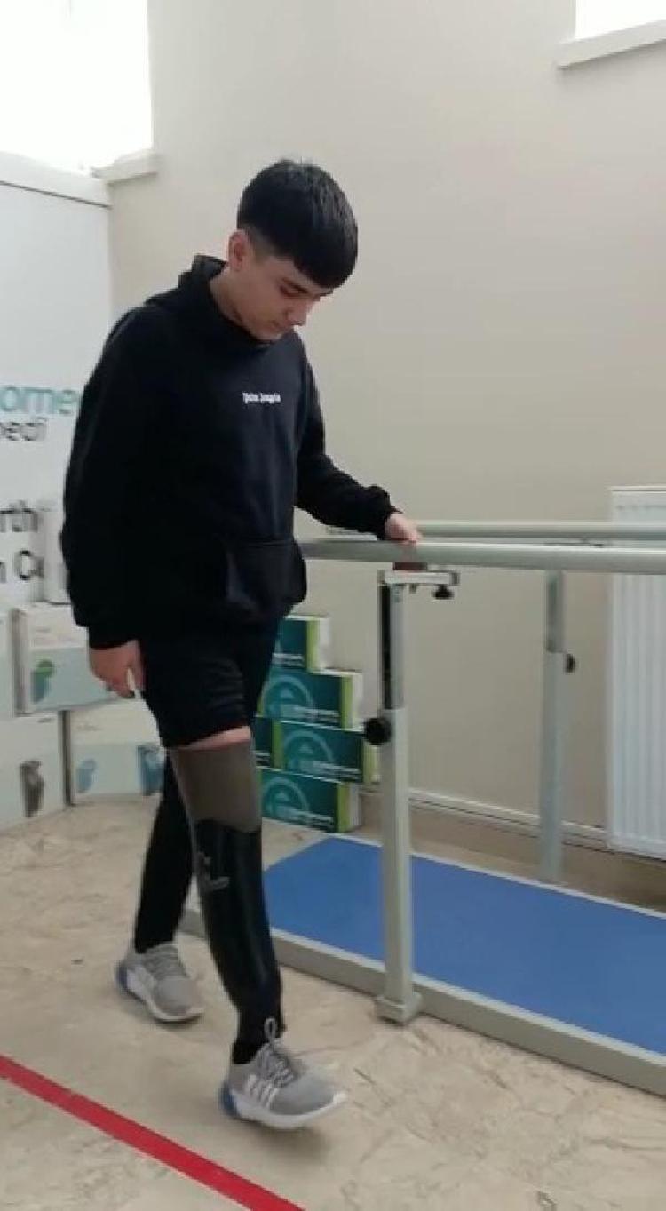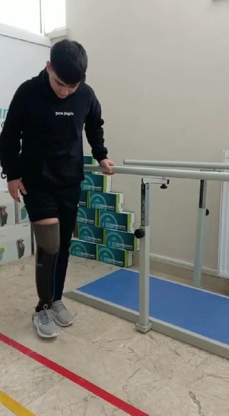 Amasya'da antrenmana giderken dengesini kaybedip, raylara düşen ve trenin çarpmasıyla sağ ayağını kaybeden futbolcu Eren Bulut (15), protez ayakla döndüğü yeşil sahada arkadaşlarıyla birlikte antrenmana katıldı.