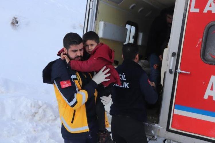 Rahatsızlanan 4 kardeş, karlı yolun açılması ile hastaneye götürüldü