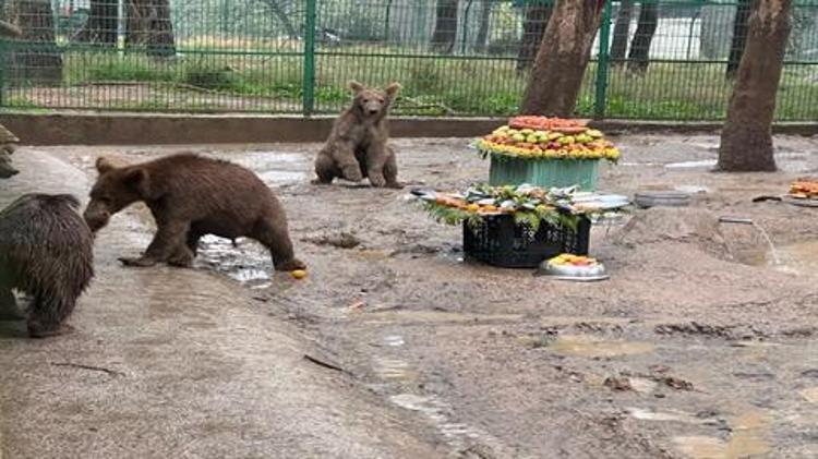 Rehabilitasyon merkezinde yavru ayılara temsili doğum günü