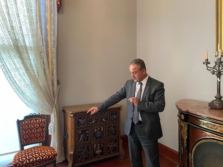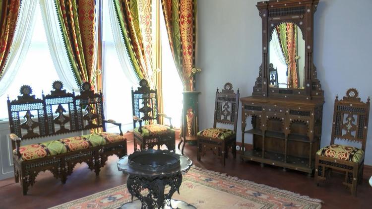 Osmanlı Hanedanlığı tarafından Fransa'dan satın alınarak harem bölümüne getirildiği öğrenilen Kaplumbağa kabuğu ve metal işlemeleriyle orijinal halini koruyan ahşap mobilyalar da titizlikle onarıldı.
