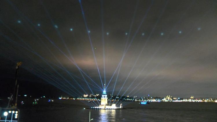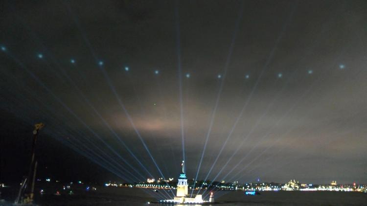 Vatandaşlar, yaklaşık 30 dakika süren ışık ve lazer gösterisine büyük ilgi gösterdi.